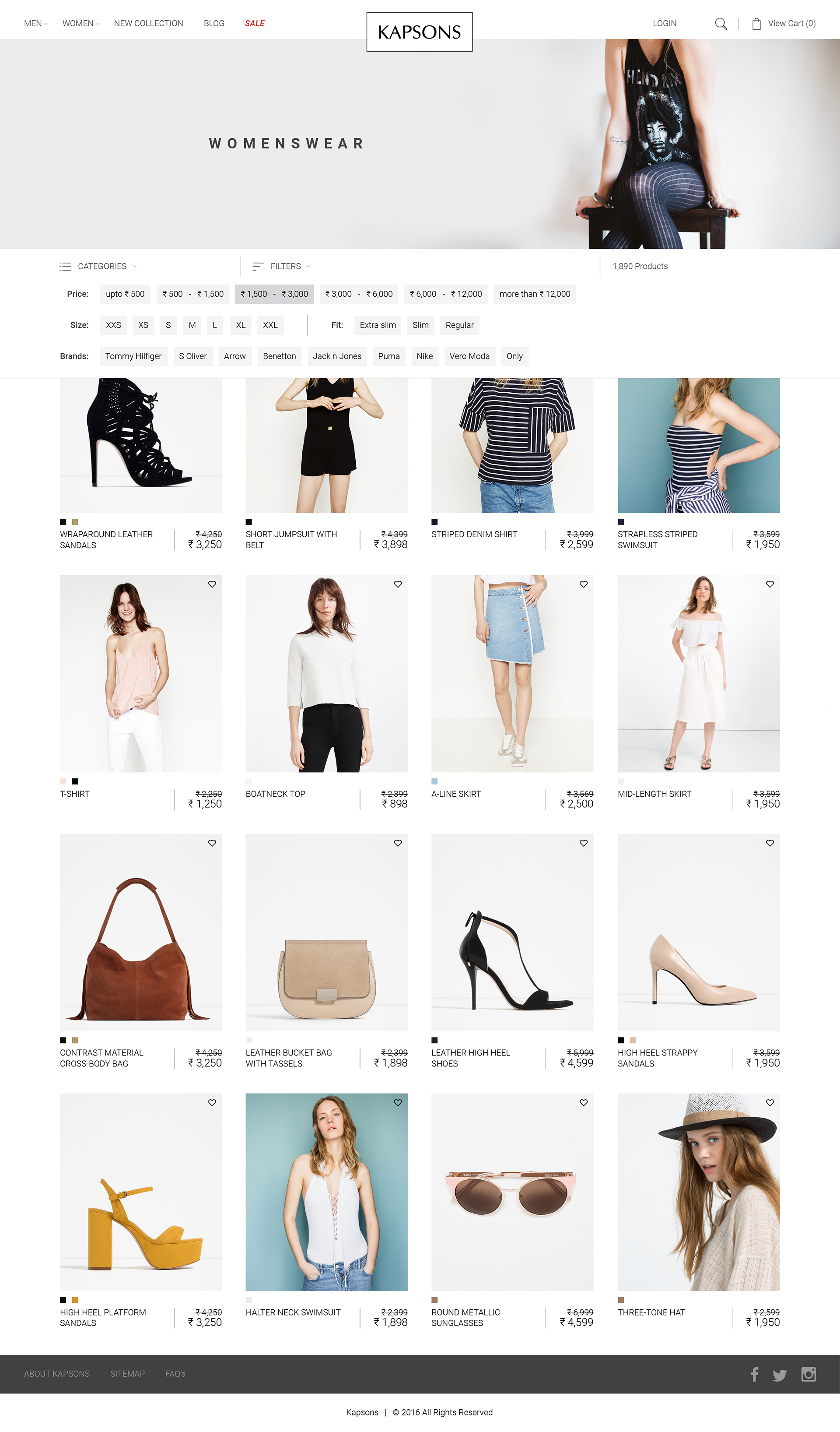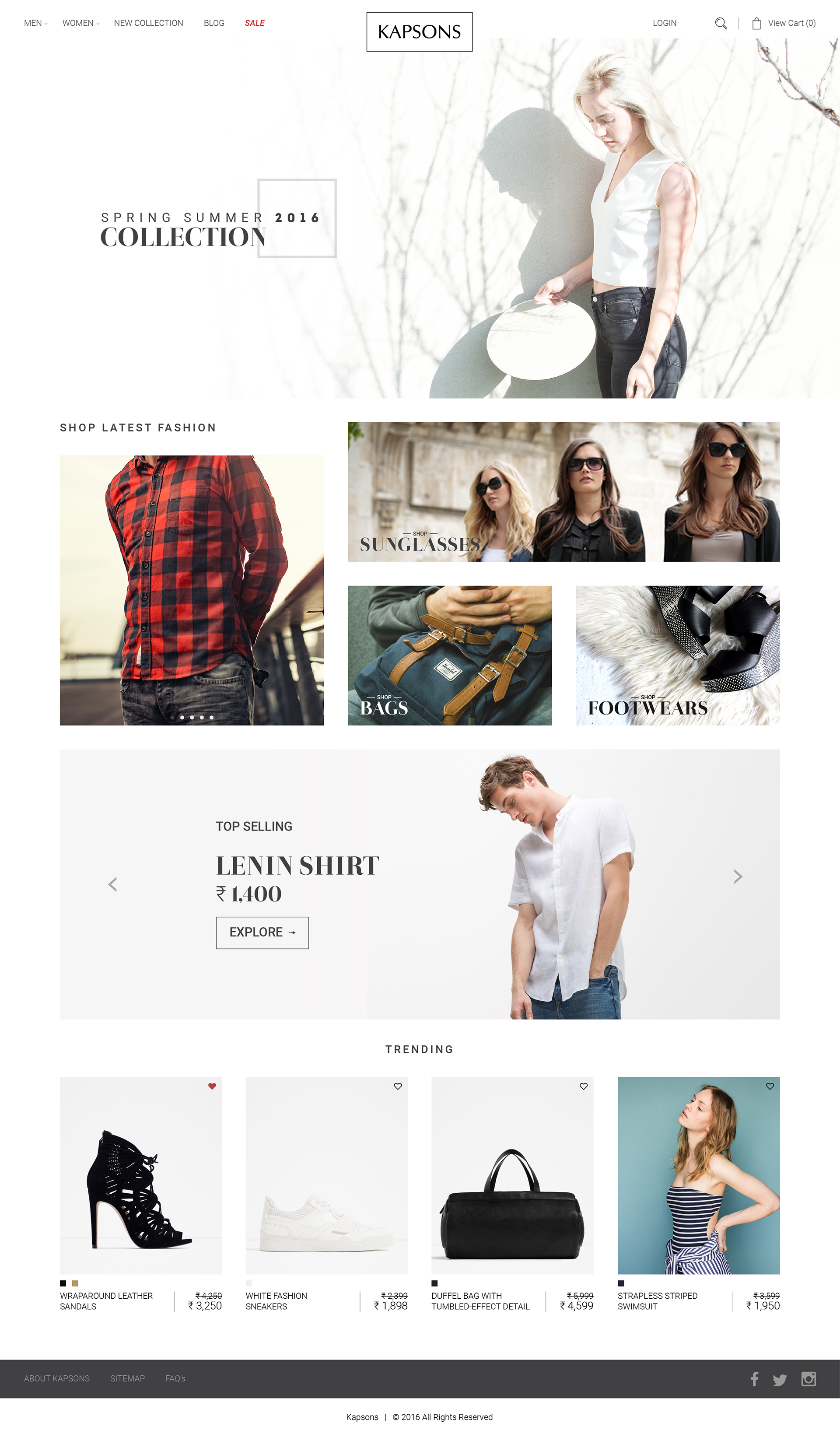 Kapsons is a leading name in North India for buying fashion apparel with a host of many high-end brands readily available at their stores, a design that is elegant and premium looking. In a meeting with the management of the company, it was clear that they wanted the website to be able to encourage new user registrations, thus increasing their database and retargeting them through online ads, hence increase in sales. To gain customer trust and make them believe that all products are authentic.