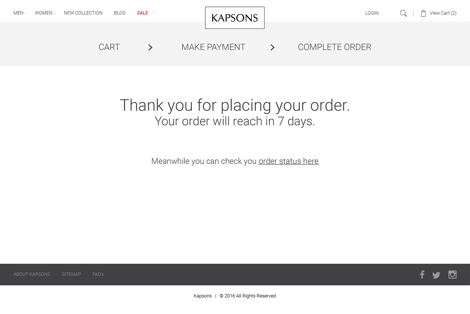 There are many websites which sells fake or non-branded apparels. As Kapsons is already a famous brand in North India, the company wanted to capture customers from all over India. In order to achieve that look professional for the people to form their trust and be able to shop conveniently